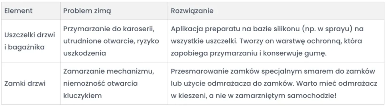 Przymarznięte uszczelki i zamki to zmora wielu kierowców zimą. Na szczęście istnieją proste i skuteczne rozwiązania, które pomogą Ci uniknąć tych problemów: